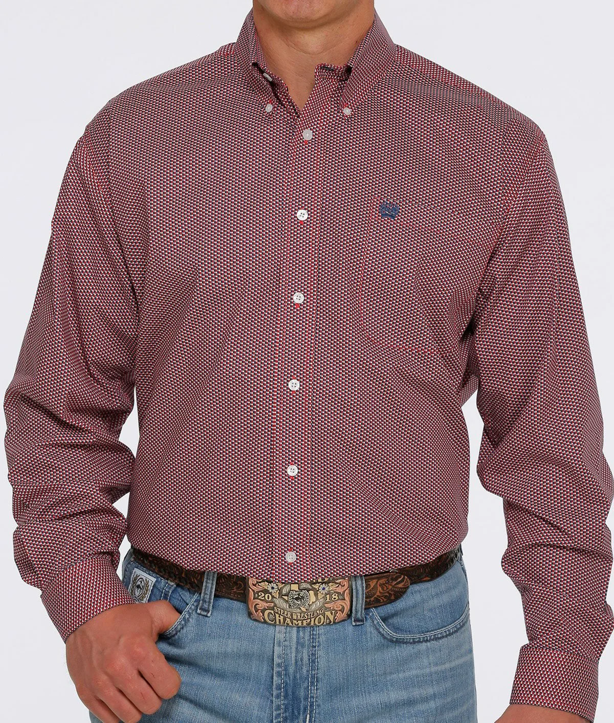 Men’s Cinch Red,White and Navy Button Down Shirt